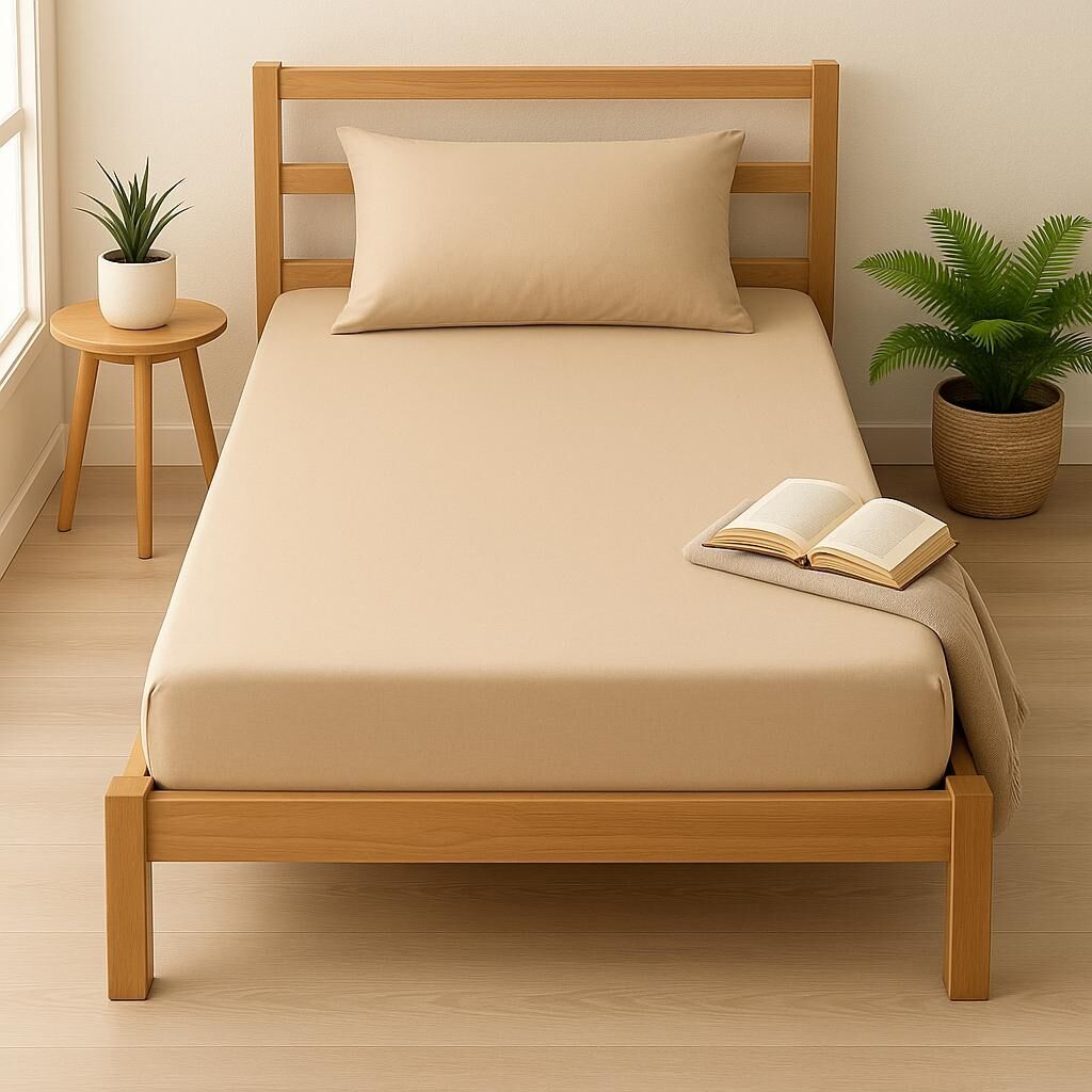 Atlas Pamuklu Tek Kişilik Çarşaf Seti - Bej